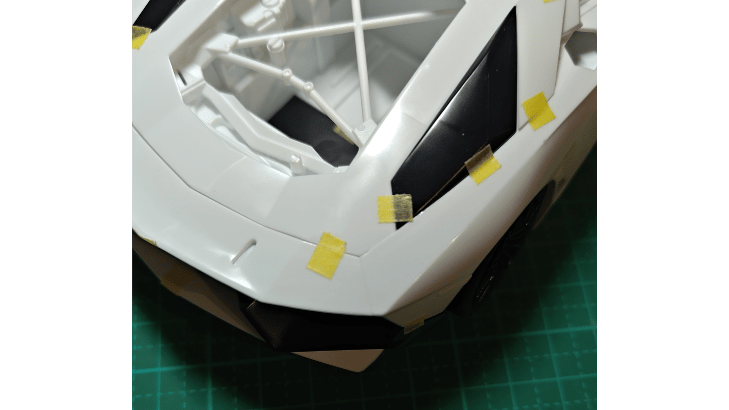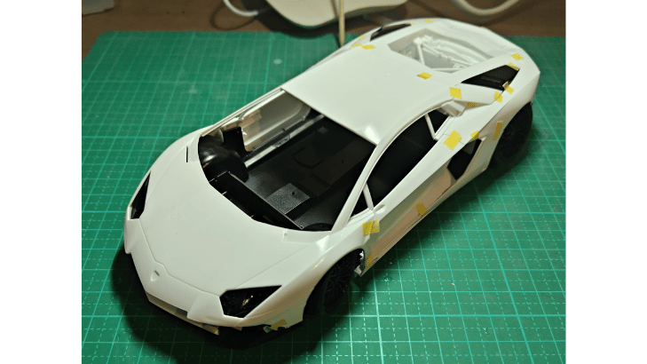 今回制作しているのは、ランボルギーニ・アヴェンタドールSVのプラモデルです。